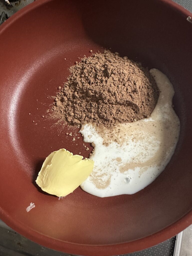 チョコクリームの材料を全部フライパンに入れて弱火で加熱。