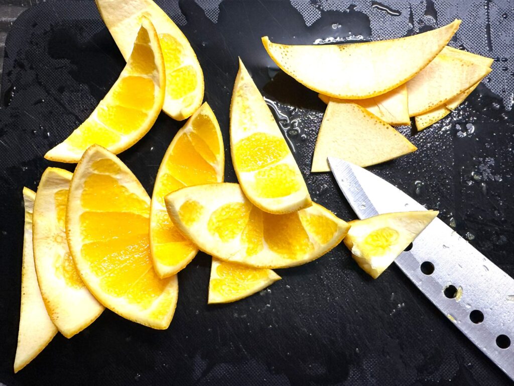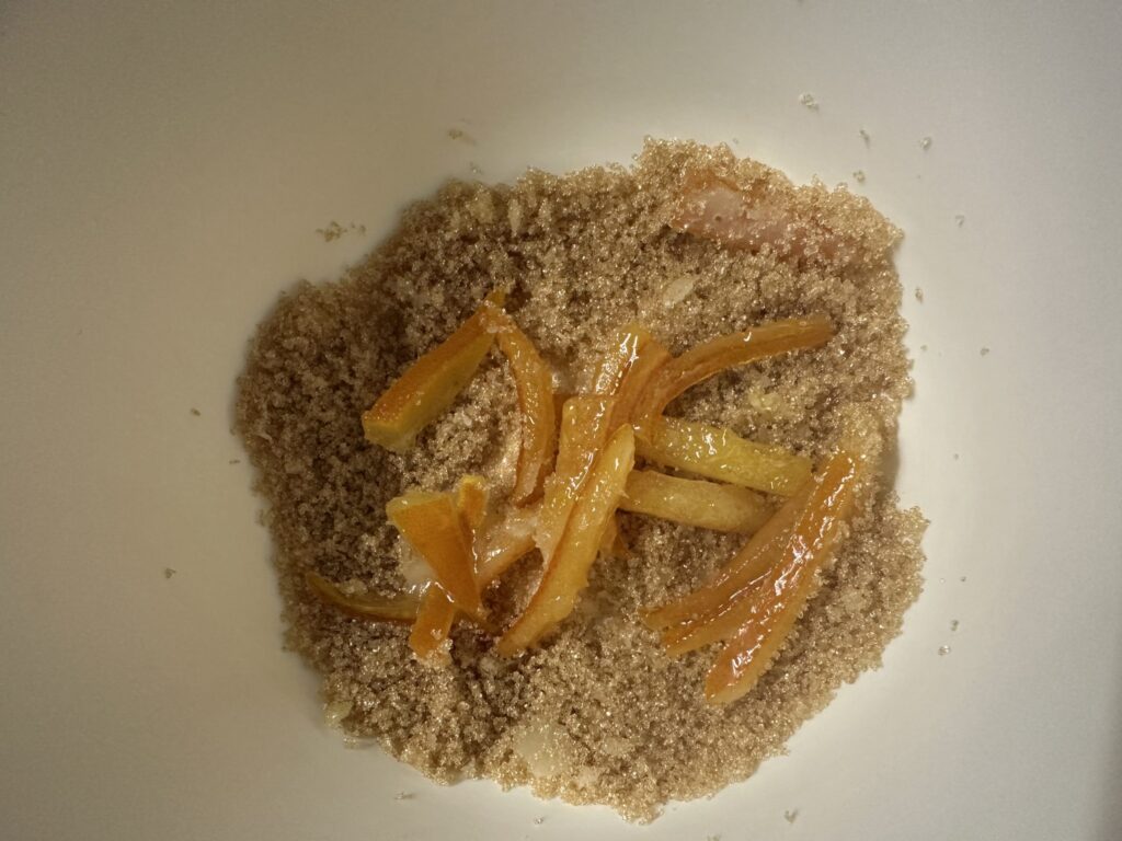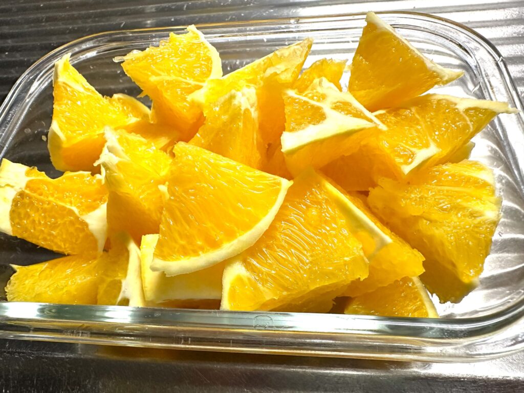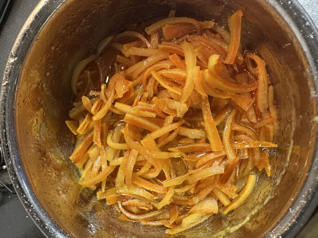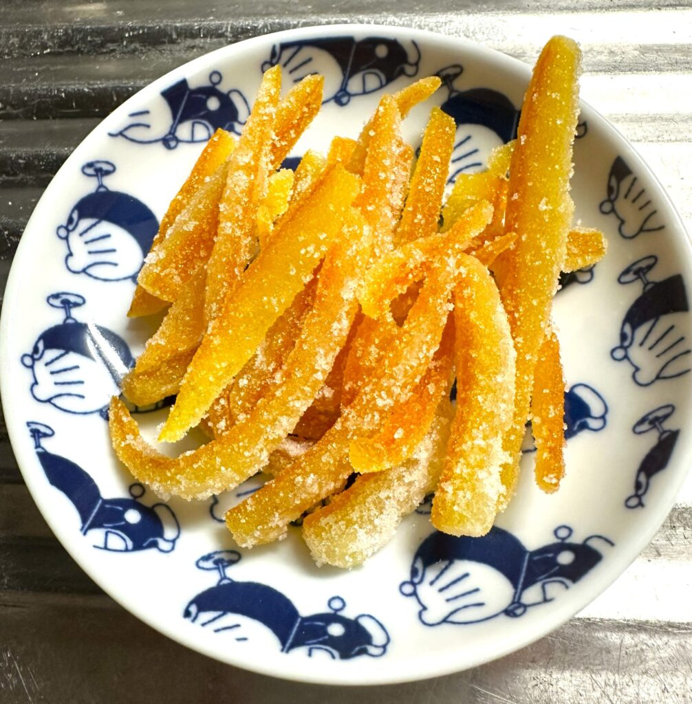庭で採れたオレンジの皮を使用して、オレンジピールを作りました。