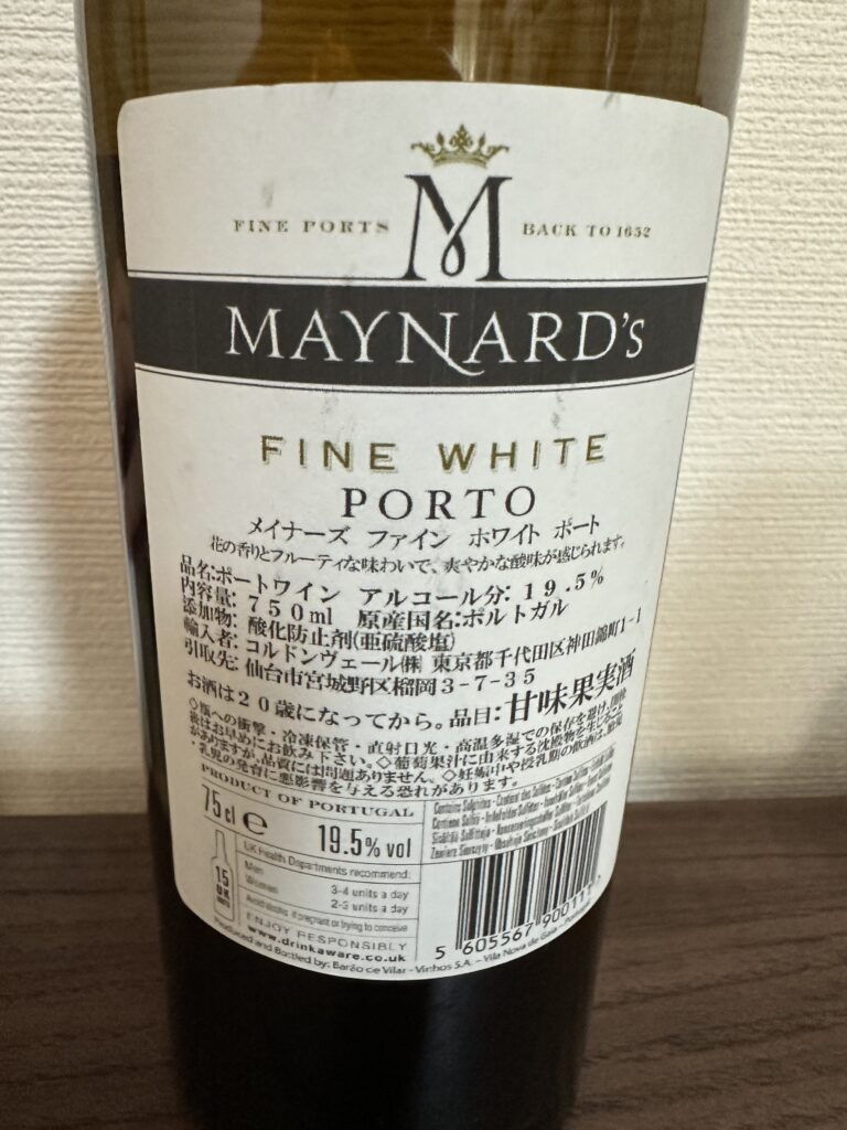ポルトガル産ワインはスペイン産ワインと比べ、取り扱い「少なっ!」てなりましたが、甘味果実酒と書いてあるポートワイン MAYNARD’S を発見。