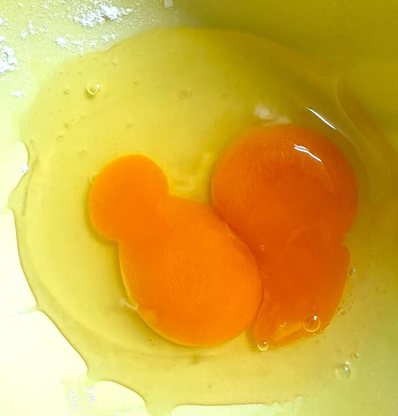 今朝、朝食を作ろうとして割ったら双子卵!!